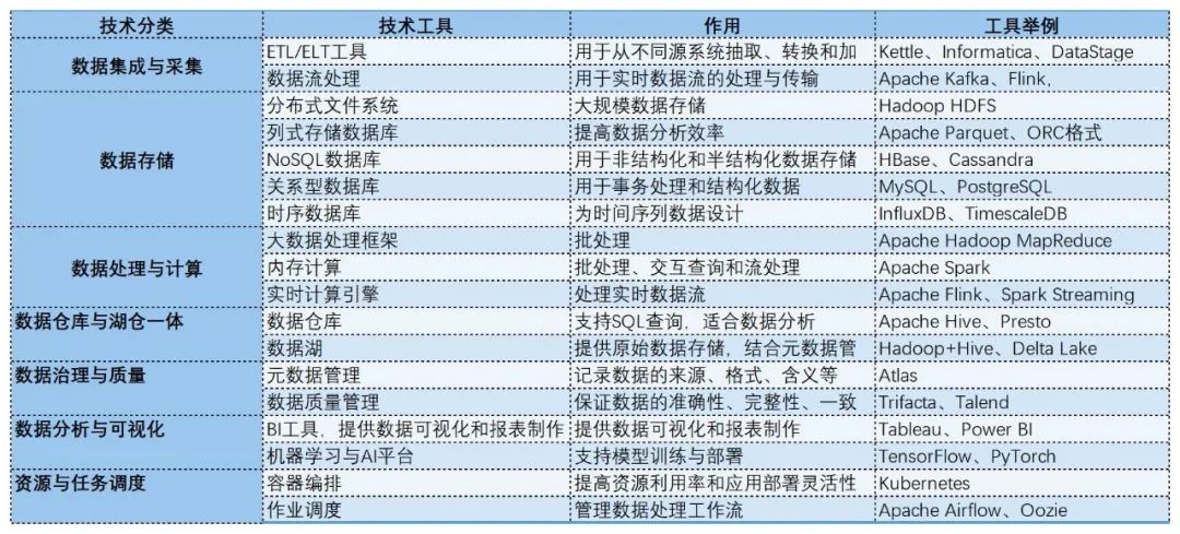 数据中台融合了多种技术和组件。以下是一些关键的技术点,构成了数据中台的技术架构: