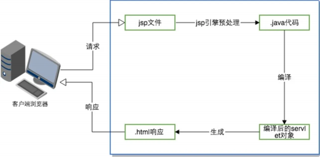 JSP的基本原理是在服务器端将JSP⻚⾯编译成Servlet。当客户端请求⼀个JSP⻚⾯时,服务器将⾸先将该JSP⻚⾯编译成Java Servlet,然后再执⾏Servlet代码,⽣成最终的HTML⻚⾯,最终将HTML⻚⾯发送给客户端浏览器。这种⽅式使得JSP具有了动态⽣成内容的能⼒,同时也能够与Java Servlet技术⽆缝集成。