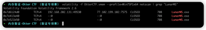 查看LunarMS该进程使⽤的⽹络连接情况查找对应IP 发现IP地址为77.102.199.102