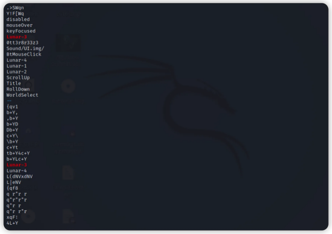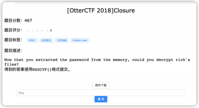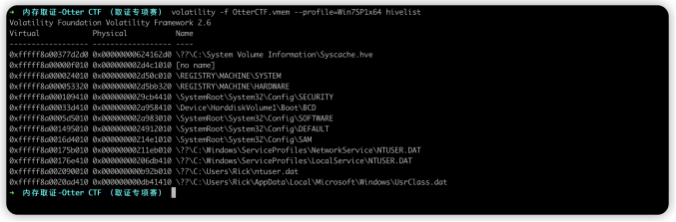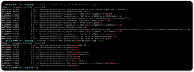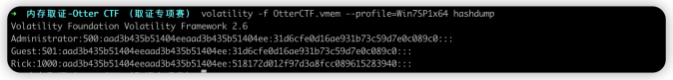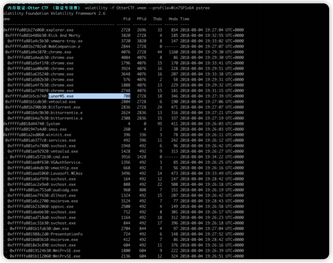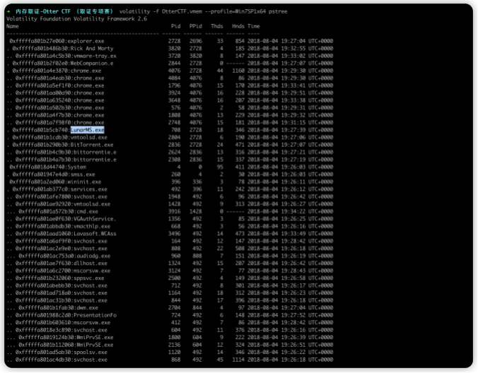 cat OtterCTF.vmem.strings | grep -C 10 "Lunar-3" 查找到Lunar-3以及对应密码0tt3r8r33z3