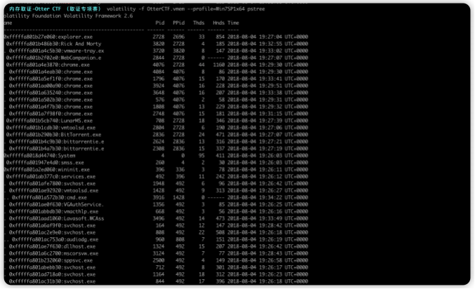 根据提示, 需要查找恶意软件进程名称, ⾸先再次查看进程列表