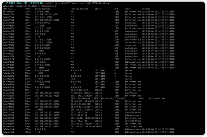根据前⾯题⽬内容可知,BitTorrent⽂件是通过web下载的,⽽且进程中发现有chrome进程,转存该⽂ 件进⾏查看