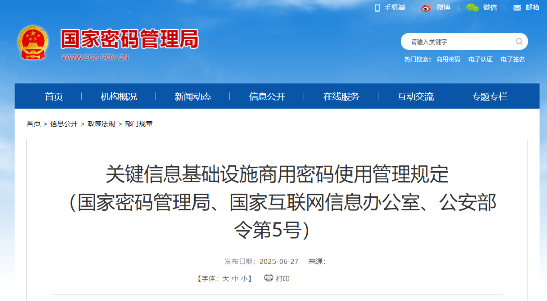 重磅!国密局、网信办、公安部联合发布关基密码政策丨关键信息基础设施商用密码使用管理规定